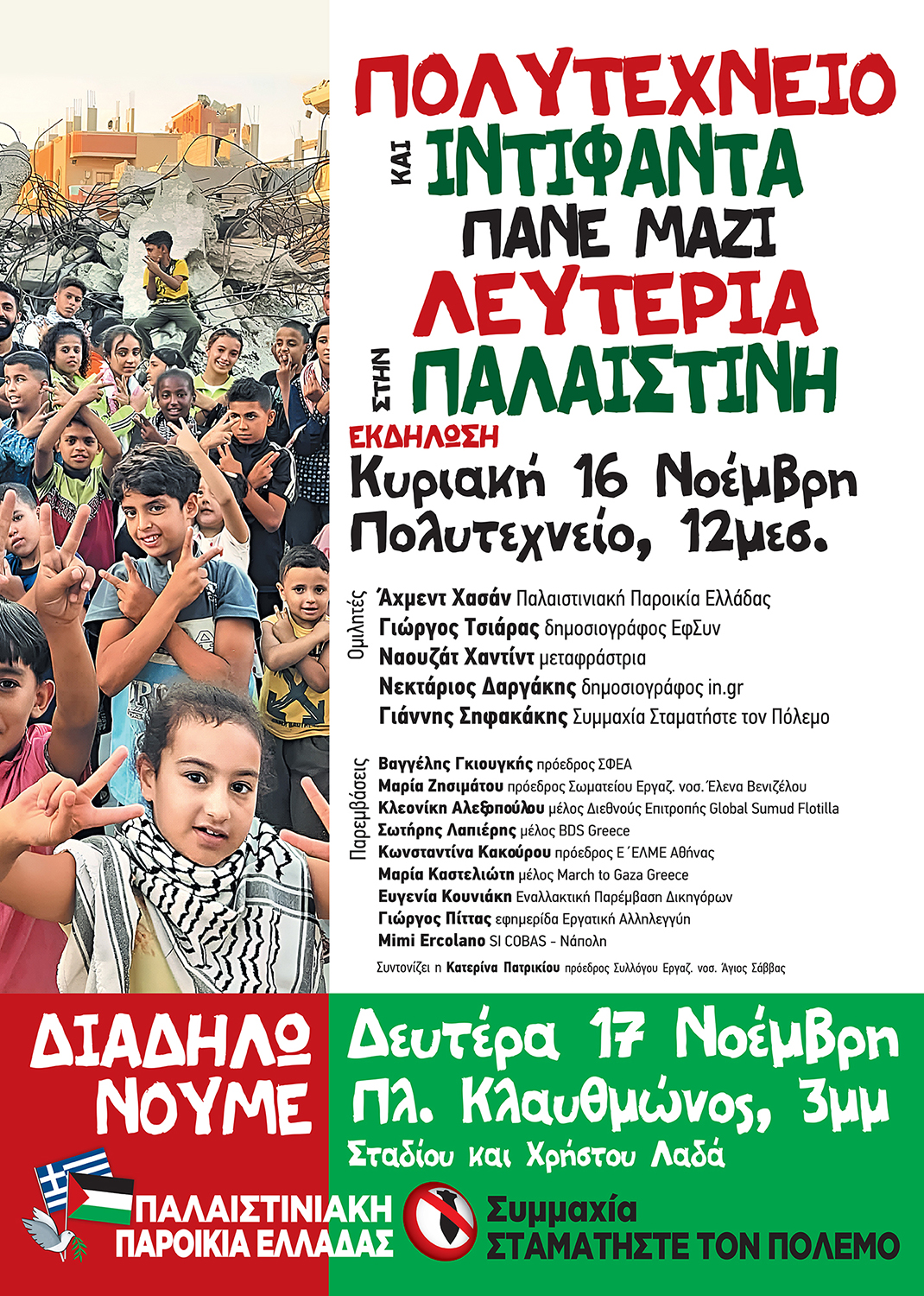 Πολυτεχνείο 2025: Ο δρόμος του Νοέμβρη και η Ιντιφάντα πάνε μαζί