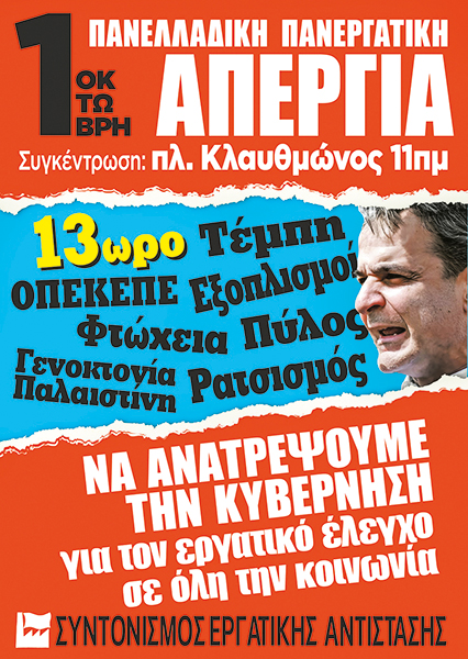 Πανεργατική απεργία 1 Οκτώβρη στο δρόμο για την Ανατροπή