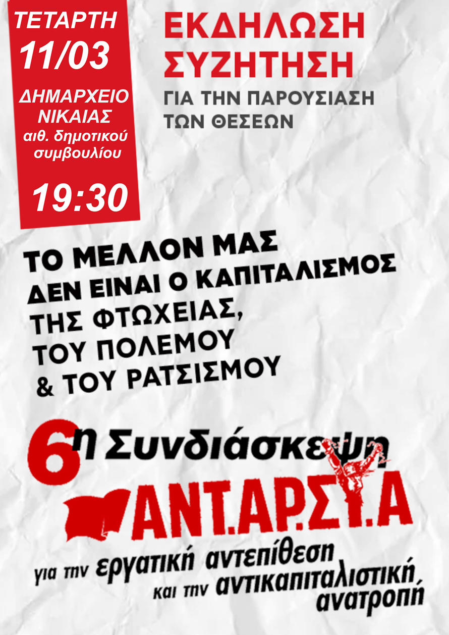 6η Συνδιάσκεψη της ΑΝΤΑΡΣΥΑ: Για τη δύναμη ανατροπής που χρειαζόμαστε