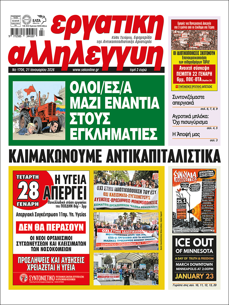 16/12/25 - Ο χαιρετισμός του Κώστα Καταραχιά, γραμματέα του σωματείου εργαζομένων του νοσοκομείου Έλενα Βενιζέλου και μέλος ΔΣ ΕΙΝΑΠ στην απεργιακή συγκέντρωση για τον προϋπολογισμό.