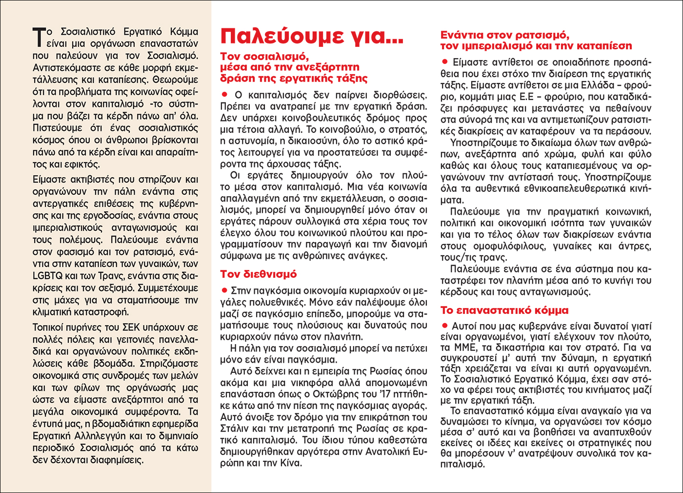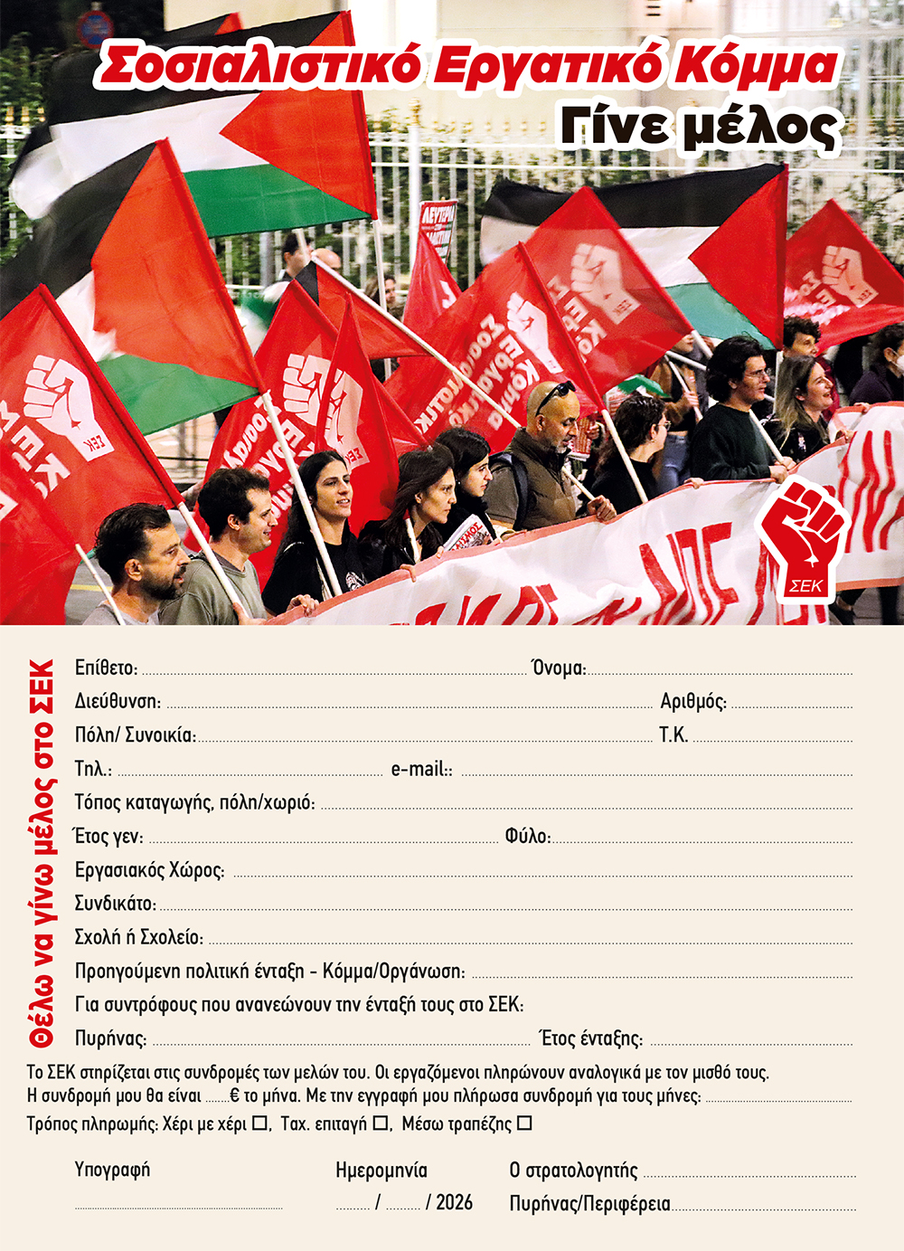 Για συντρόφους/ισσες που ανανεώνουν την ένταξή τους στο ΣΕΚ: